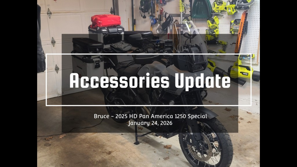 I have been testing my Alaska loadout on Bruce (my ’25 Pan America 1250 Special) and have it complete. The bike is significantly heavier (about 120 pounds of stuff) but is the complete loadout to include clothing, tools, electronics, 6 Mountain house meals, riding gear, and camping gear). When hauling 2 gallons of water and emergency gasoline, this will add an additional 28.7 pounds to the load. I will create an updated packing list and video covering the “final” Alaska Loadout. I will be testing this configuration further during my Florida Loop 2026 – Motorcycle Touring Trip this coming April (4/11/2026 – 4/11/2026).