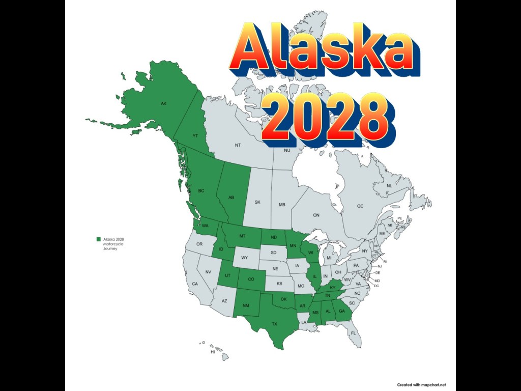 As I have mentioned in other posts and videos, Alaska 2028 will be my motorcycle touring trip planned to start on June 23, 2028 and end on August 01, 2028 consisting of 11,781 planned miles.