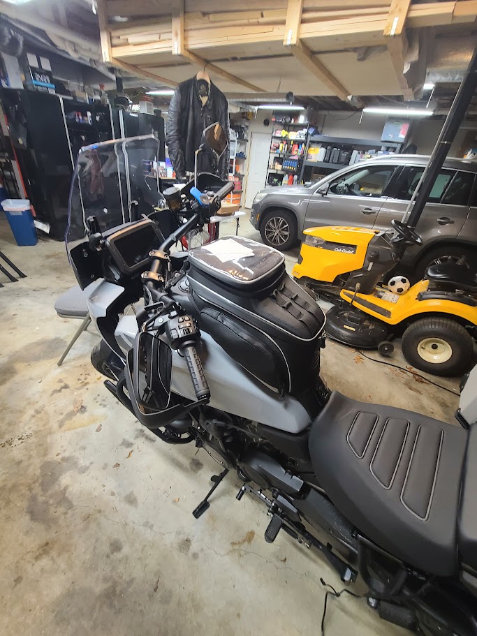 Test rides on Bruce with the full load were great with no issue in handling or ride, with the exception of stalling the bike when the engine was cold, resulting in a slow motion drop to the left side as I was engaged in a left turn. I have learned that this engine really needs to be warmed up properly before heading out. I have stalled it other times as well (no load) on a cold engine.