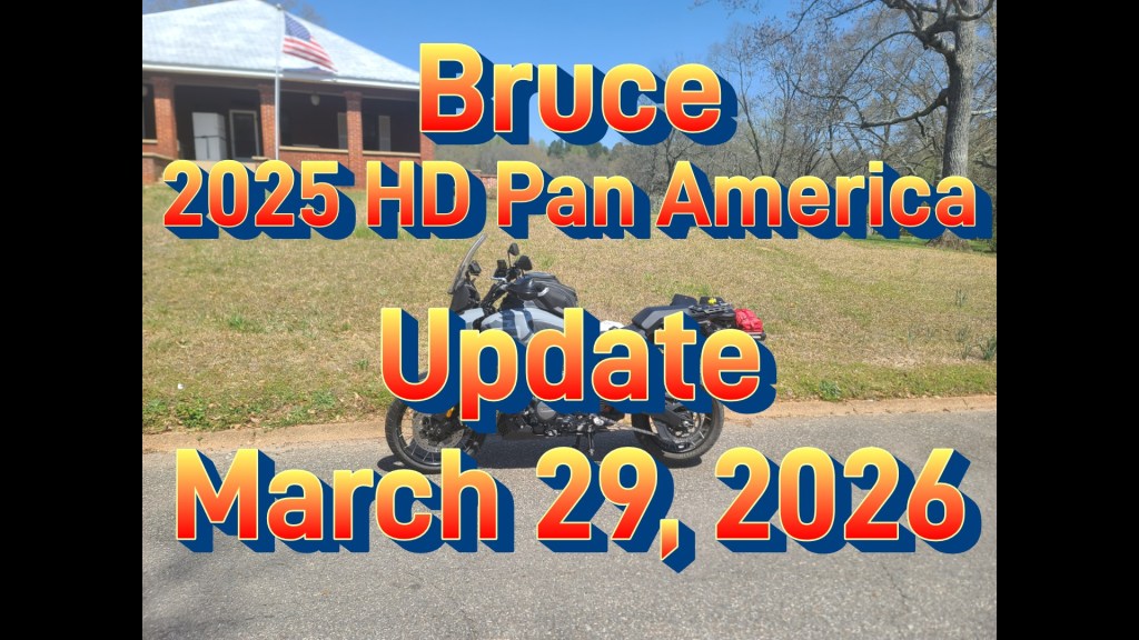 Here is a short(ish) video updating the current status of Bruce, my 2025 Harley-Davidson Pan America 1250 Special. Bruce was brought back to Atlanta Harley-Davidson on March 26, 2026. I am hoping to pickup Bruce by Wednesday April 1st, 2026. I am scheduled to roll out on Saturday April 4th, 2026 to begin Florida Loop 2026.