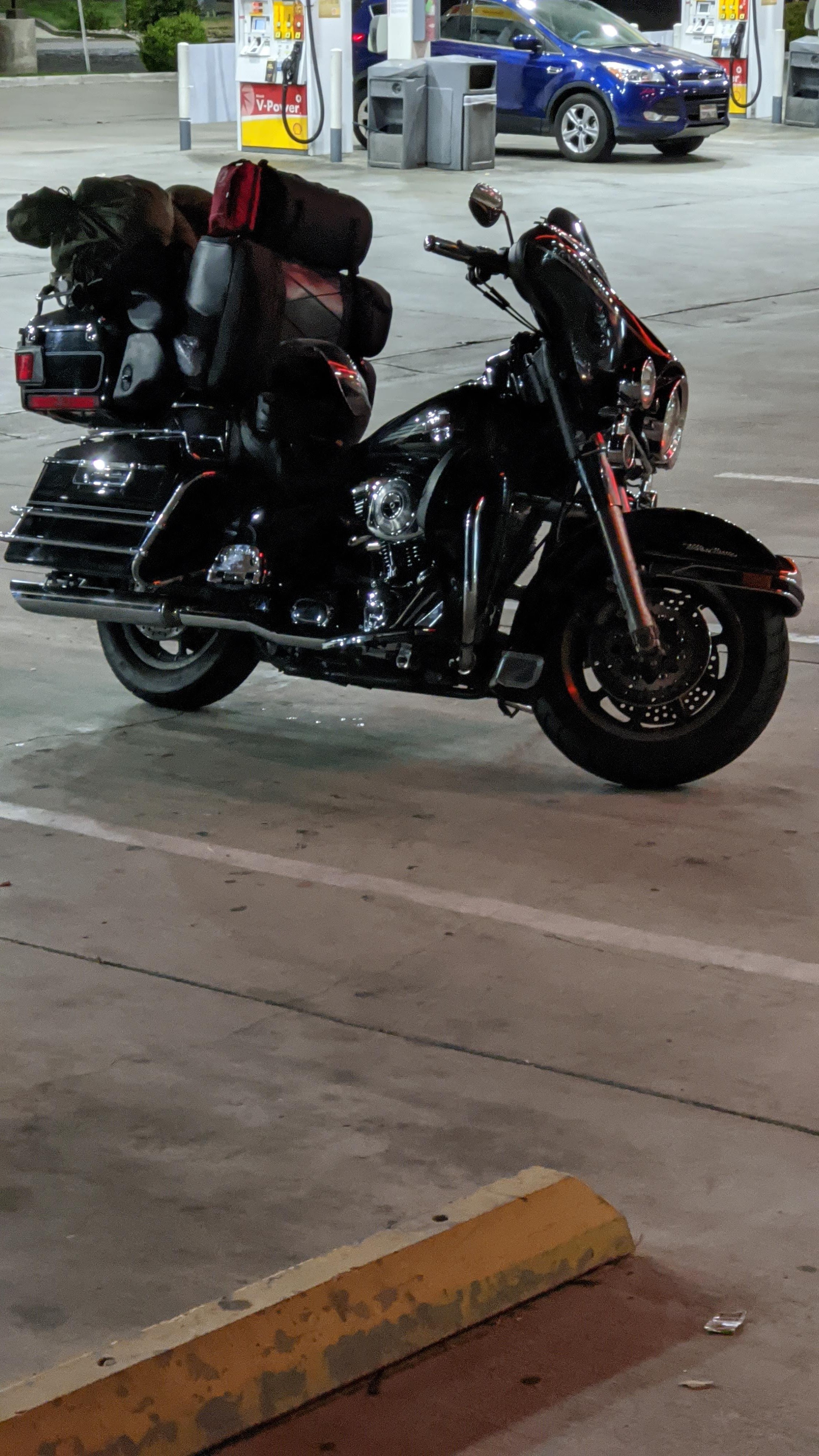 My wife and I arrived back in Ramona at about 6PM, a full 8 hours after my initial planned departure time. I proceeded to haul the gear out of our car and reload Dexter, prepare myself, and proceed to top off fuel again across the street from the motorcycle repair shop.