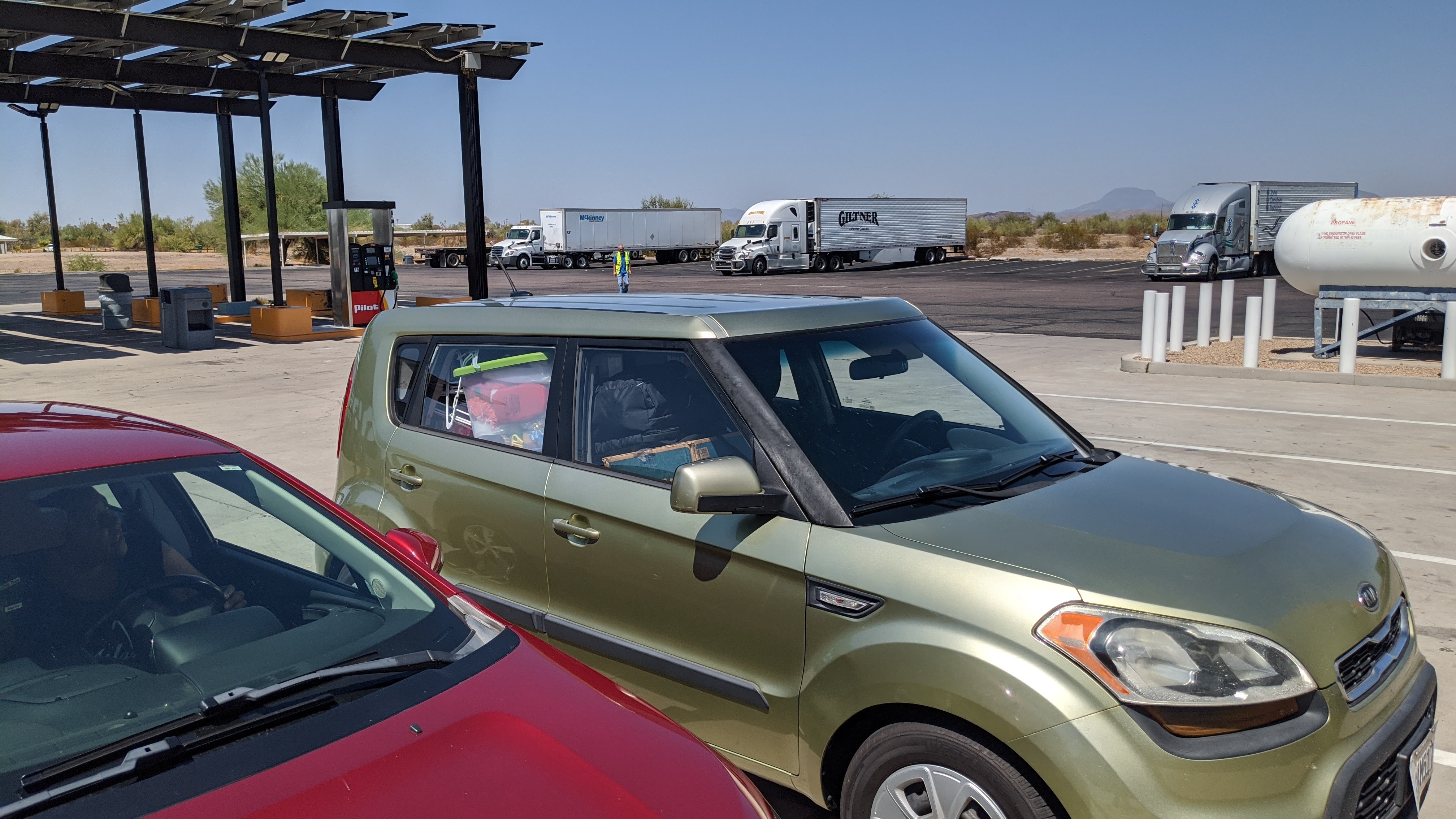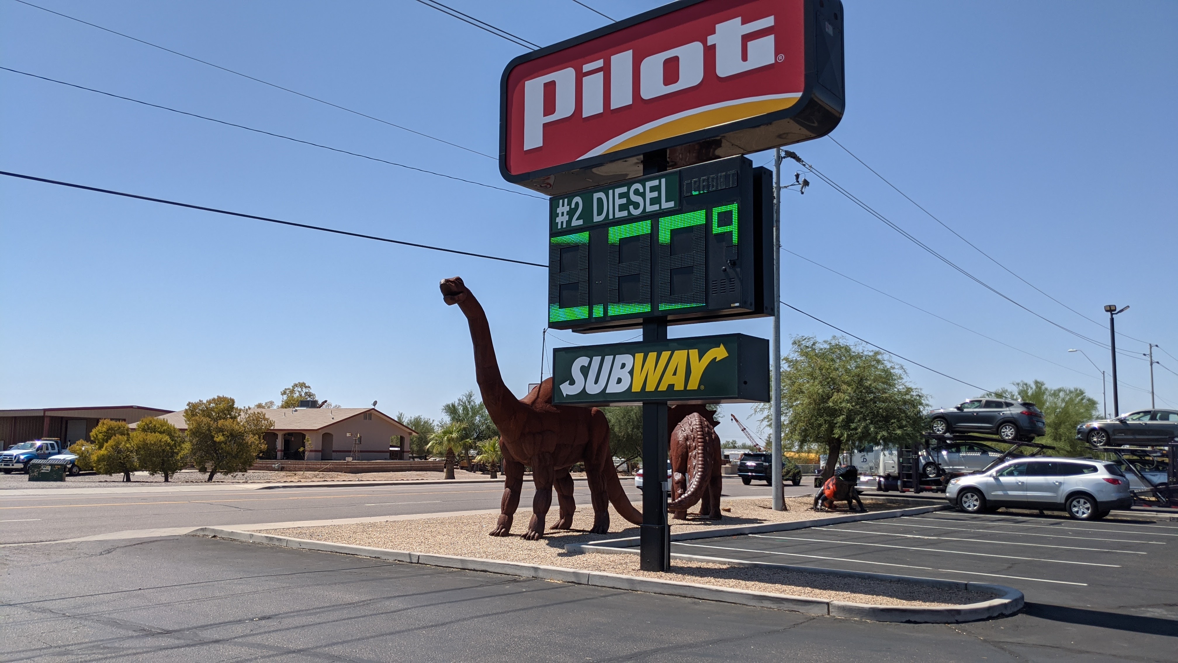 De’Andra and I finished up our lunch at Subway in Gila Bend, Arizona. And prepared to fuel up the cars and head out again. At 11:32 AM, it was already getting hot at 104 degrees Fahrenheit.