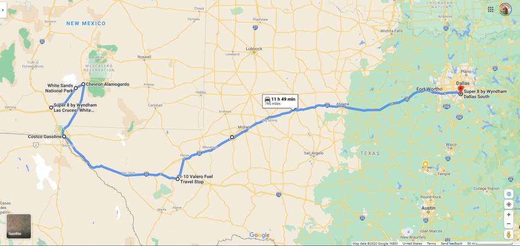 We stopped at the Costco in El Paso right off Interstate 10, fueled up, freshened up a little in the Costco bathrooms and jumped back onto Interstate 10 heading east.