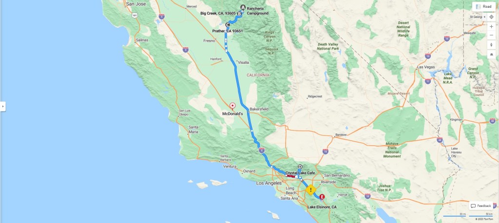 From Huntington Lake I rode south to Santa Clarita, CA and west to Azusa, CA tuning north onto CA Highway 39 and camped overnight in the San Gabriel Mountains (Crystal Lake Campgrounds). Then it was back to Lake Elsinore, CA (where I lived until October 2019).