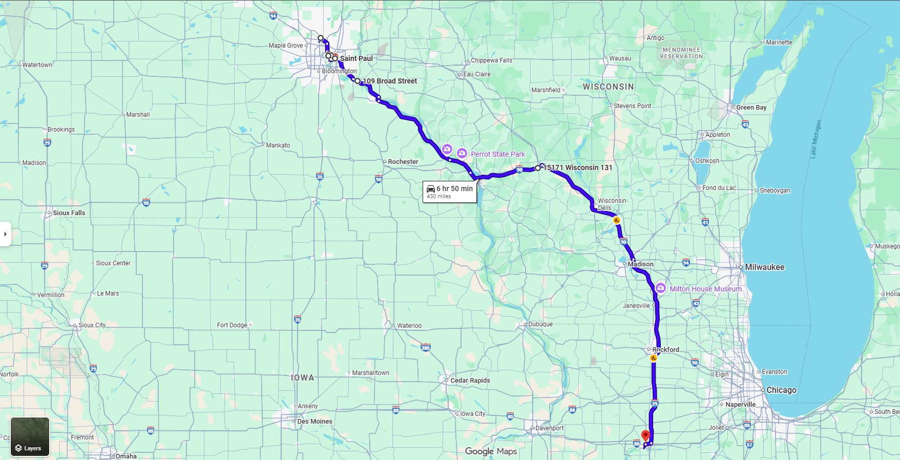 I rolled out from Coon Rapids, MN through Saint Paul, MN (see part 1 video), into Prescott, Wisconsin and completed the day in Peru, IL.