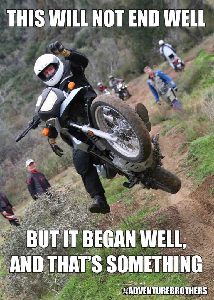Today with my full Alaska loadout (40 days roundtrip – includes 7 days of not riding) So, a heavy load. After not riding for about a month, I wanted to test the load, new riding gear, and put some more miles on the bike for break in. Well, it was cool today (40’s) and I really did not warm up the engine. Went to take off from a stop sign in my neighborhood while making a left turn and I stalled the bike (good job LOL) instant stop and tip to the left and in slow motion laid it down on the left side as I was unable to recover from the stop with the wheel turned left and already partly engaged into the left turn. I did not try to catch the bike (did that the first time and tweaked my back a little that time). With the bike fully loaded (and in gear) I was able to pick it up without too much effort.