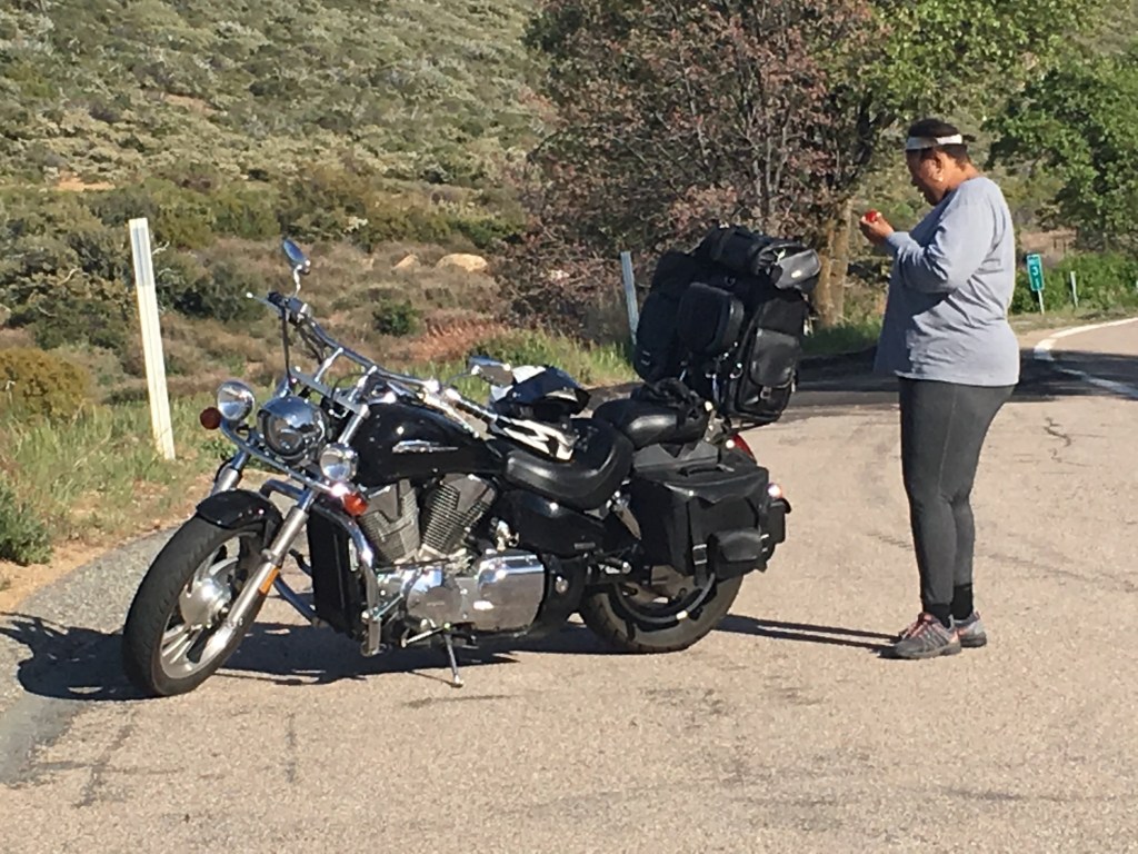 DeAndra and I ride east on the Sunrise Highway in San Diego County California, San Diego County Highway S-1.