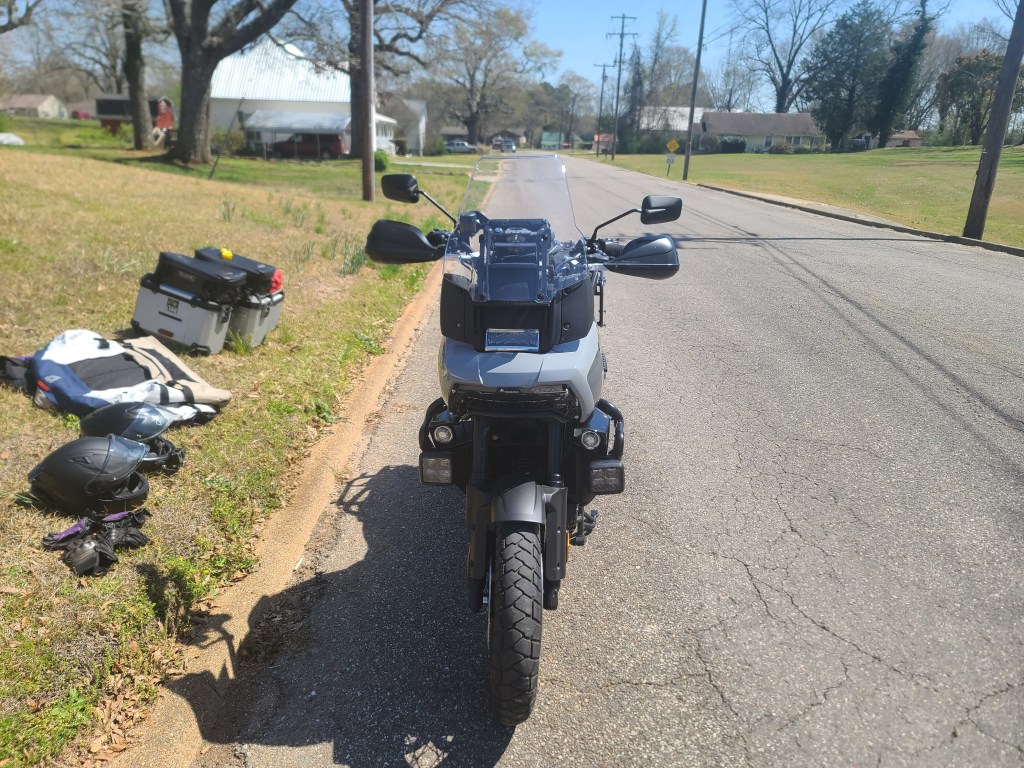The paniers on Bruce were empty with the panier bags packed in my garage at home for the upcoming Florida Loop 2026 Touring Trip starting April 4th, 2026. My wife and I discussed packing my tools and tire repair kit, but I was reluctant to unpack my tool bag. Also being that Bruce only had slightly over 1,000 miles at this point, we both agreed that the odds of a breakdown were minimal (I can still hear the universe laughing about this comment).