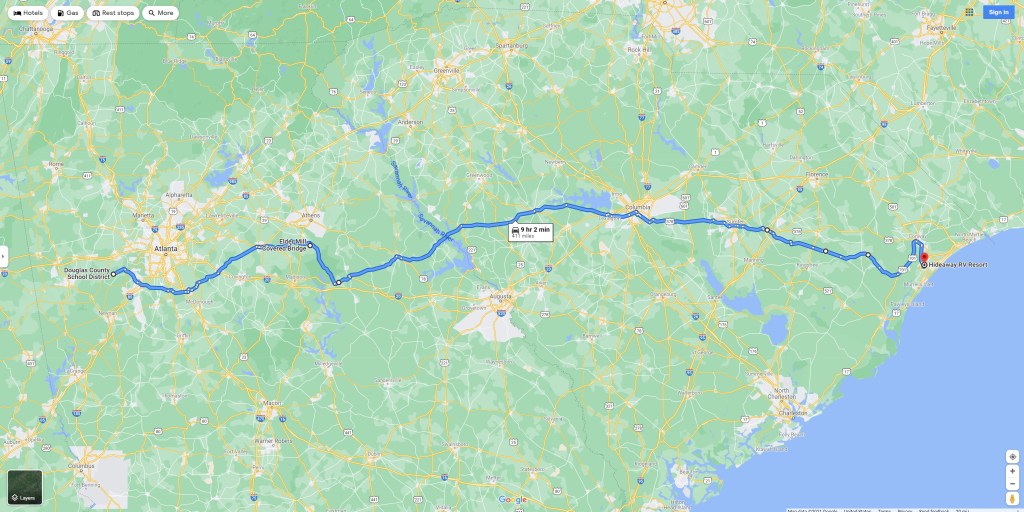 I am planning to roll out Friday morning between 9 or 10 AM and arrive at the RV resort no later than 7 PM. I will be tent camping at the resort. This will not be wilderness camping that I prefer but was a much more economical option than what hotel rooms are going for in and around Myrle Beach. Besides, I enjoy tent camping and I like to travel cheap when I can. Plus the RV resort has many amenities including laundry, showers, pool, pier and fishing pier, etc. As my wife knows, I will not be doing any swimming, I was born a land animal lol.