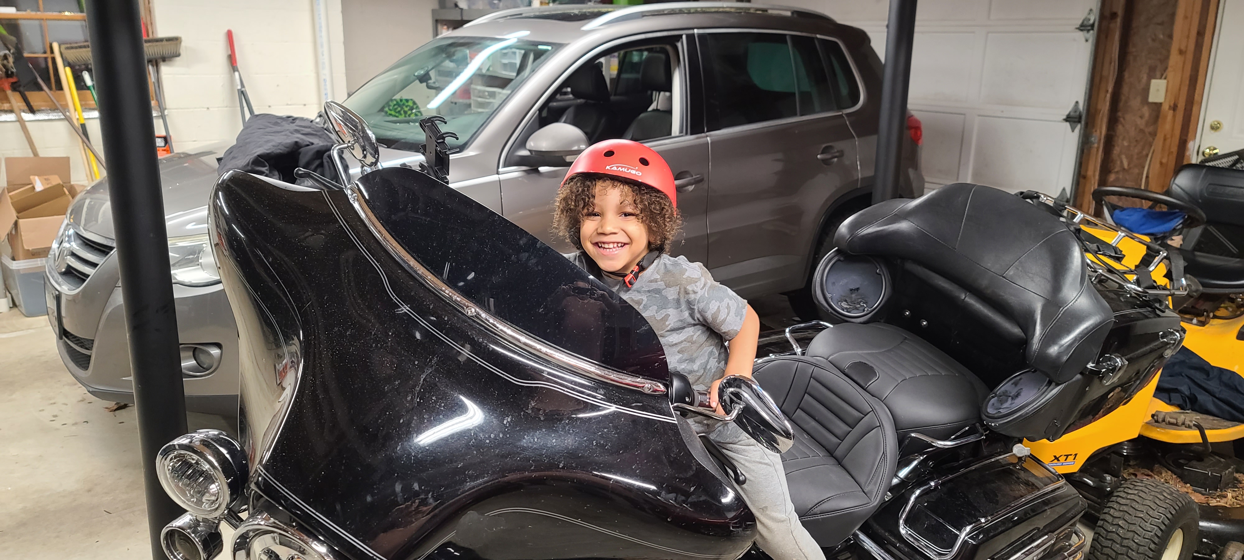 Ever since he was old enough to walk or even before he could talk in 2018, he was interested in getting on the motorcycle , Dexter a 2005 Harley-Davidson Ultra Classic, and wanting to ride.